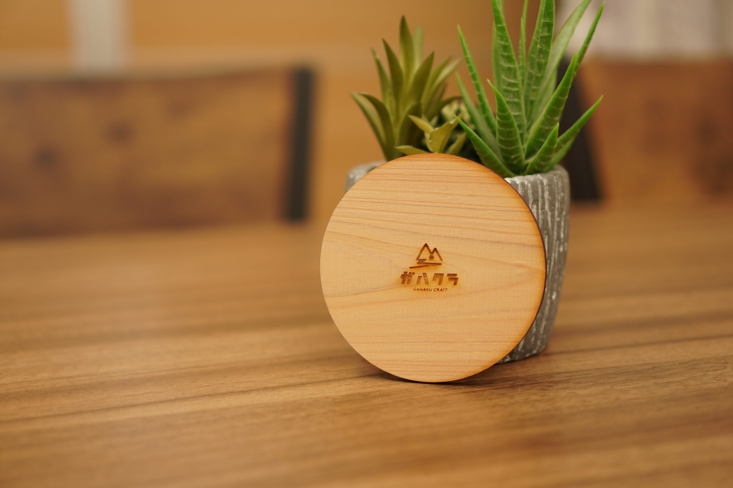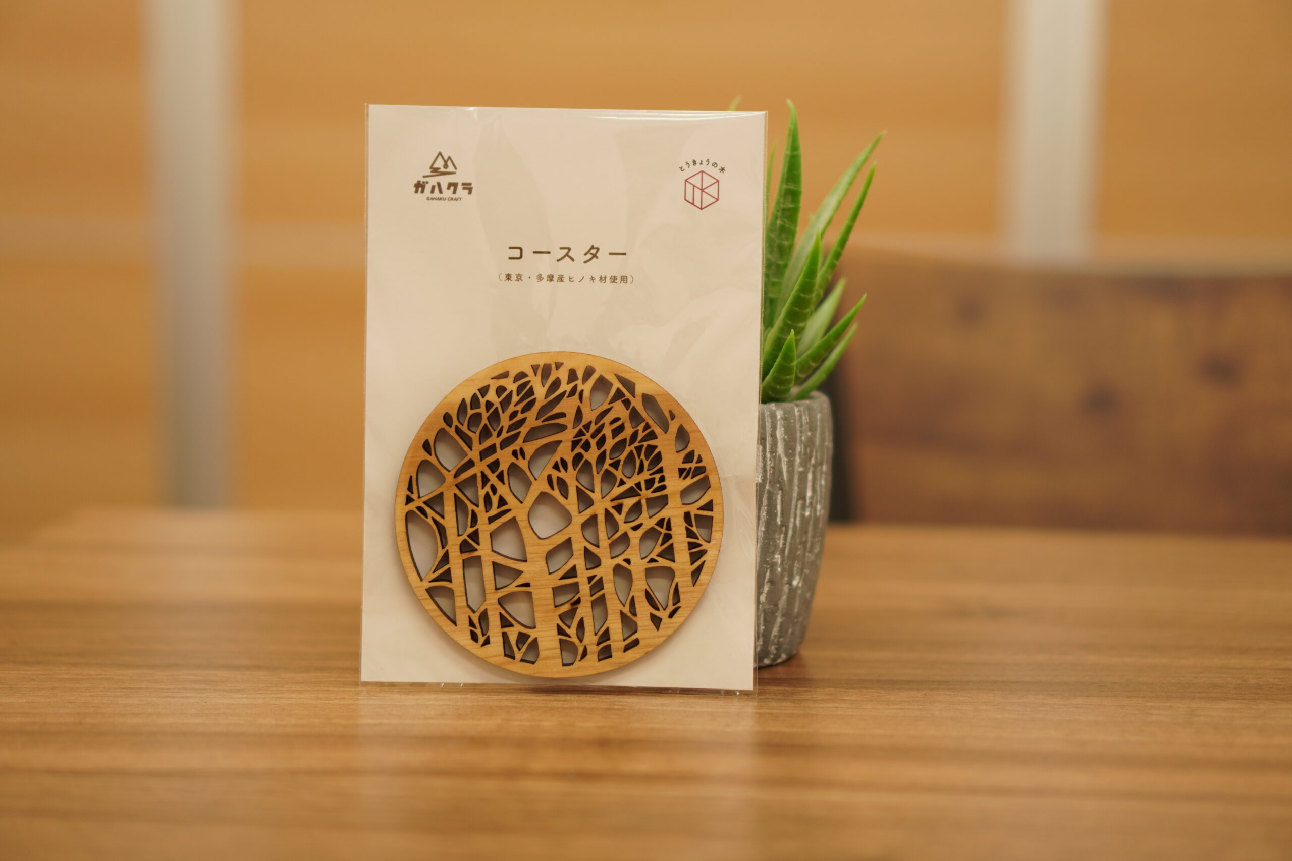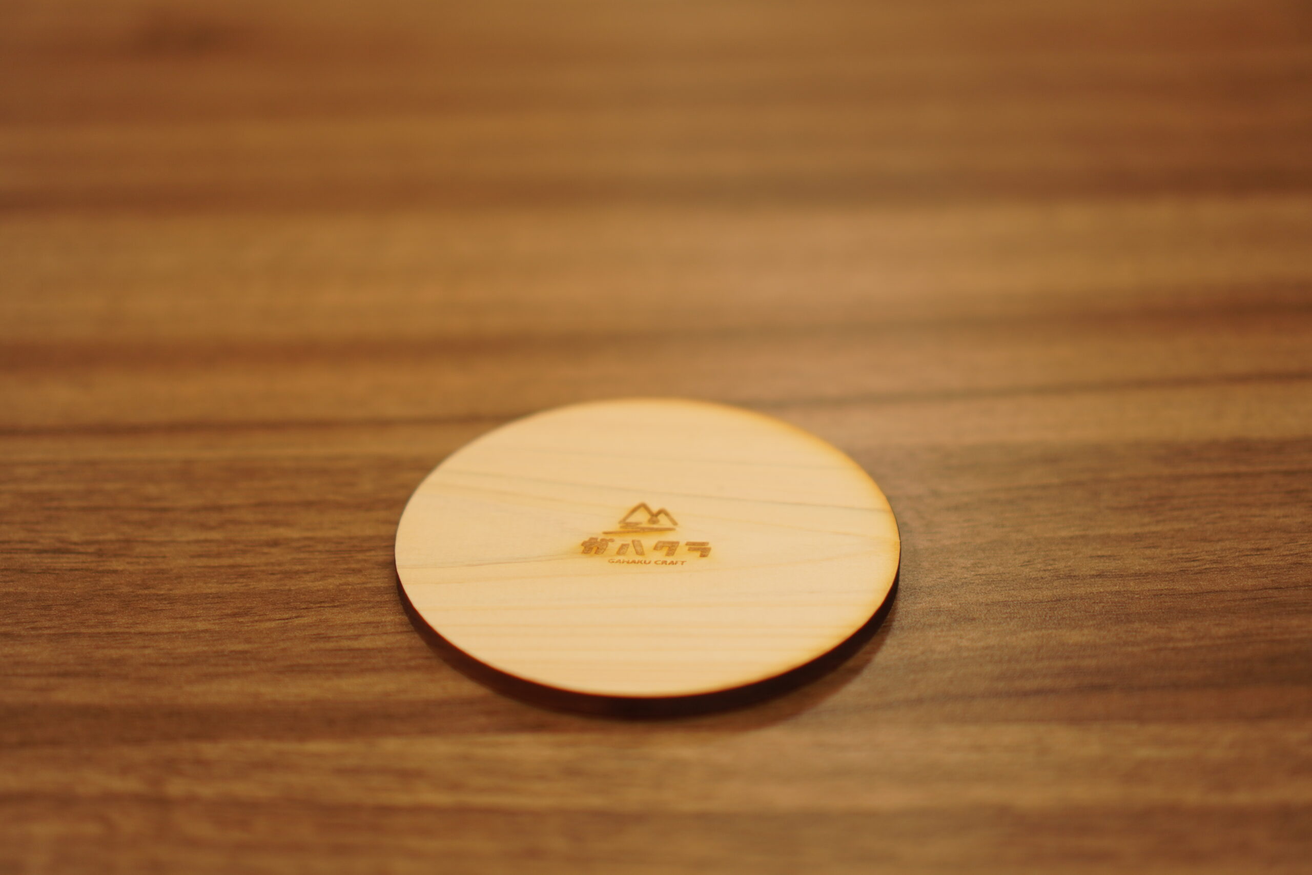 多摩産材ヒノキを使用した、ぬくもりある木製コースターです。標準の丸型に加え、自由な形状カットにも対応しており、ロゴやイラスト、キャラクターなどオリジナルのデザインをそのまま表現できます。