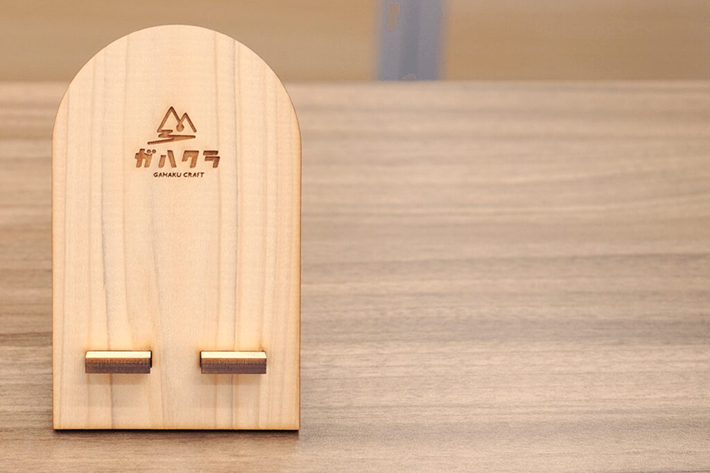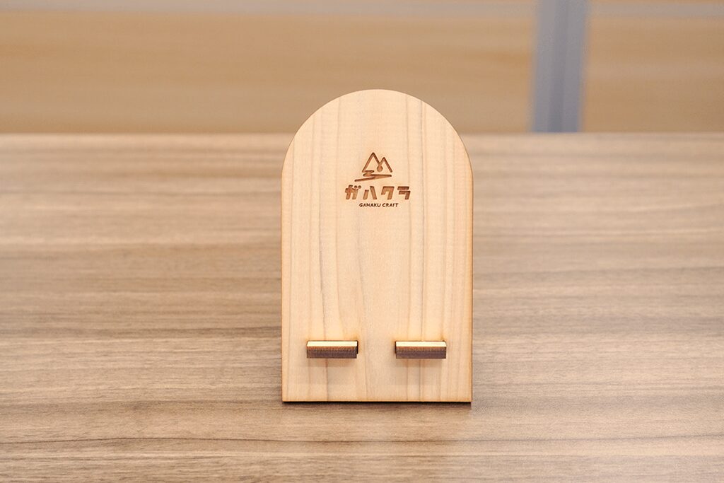 アーチ型のやさしいフォルムが目を引く、木のスマホスタンド。